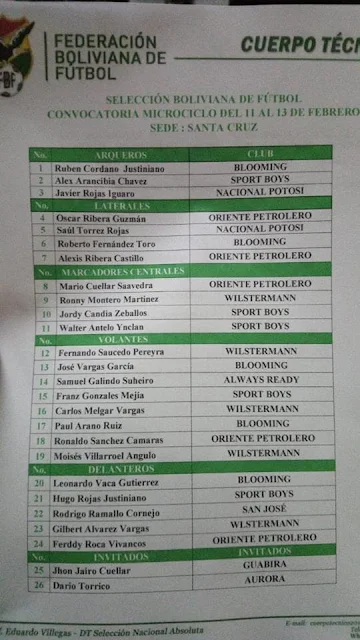 Primera Convocatoria de Eduardo Villegas para el microciclo del 11 al 13 de Febrero